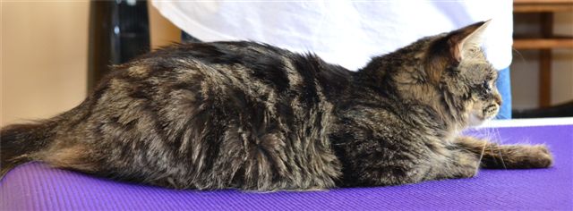 That just leaves, Sybil (adult Torti-point Siamese), Azure (adult Russian Blue that mom found as stray) and Mandolin. All are available for adoption, and all are still doing well.